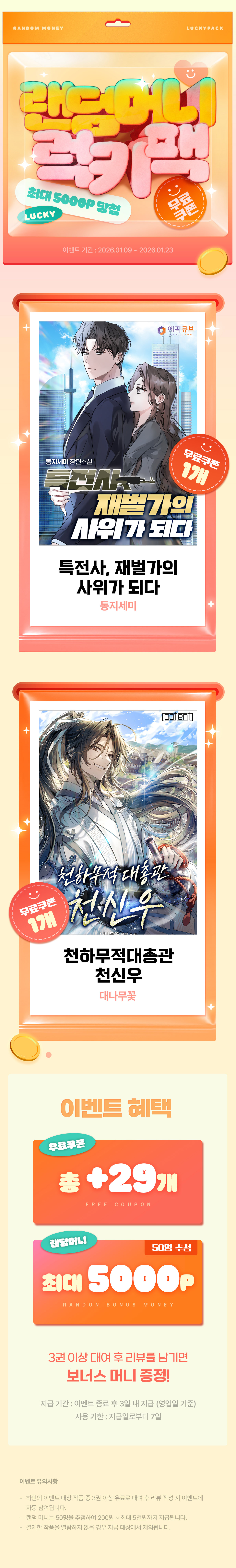 [랜덤머니 럭키팩] 단독 무료쿠폰 29개 & 랜덤 머니의 기회!
