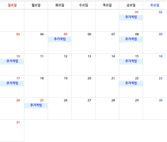 12월 추가적립 이벤트(블루데이) 일정을 안내해 드립니다.